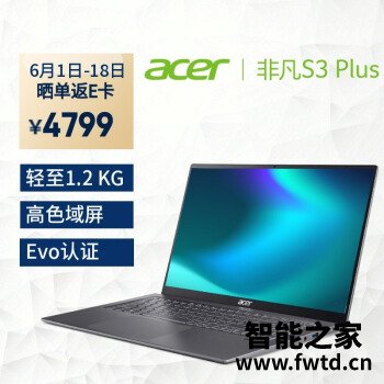 宏碁(Acer)非凡S3 Plus轻薄本 16英寸办公笔记本电脑 高色域全面屏(11代标压i5-11300H 16G 512G 雷电4)灰活动到手价格4299元!